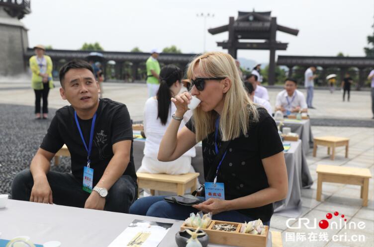 外媒记者在禅都文化博览园露天广场观看茶艺,了解茶道 摄影 胡竹根