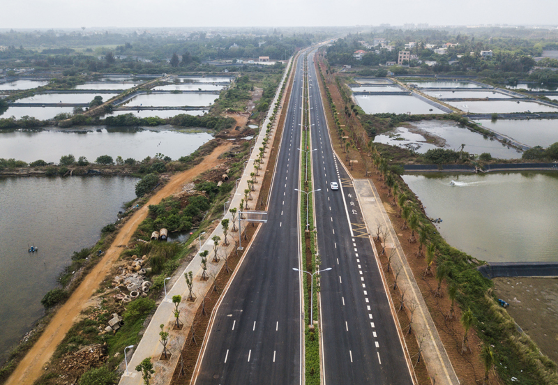 近日,随着海口东寨港大道北段工程完工并投入使用,东寨港大道全线通车,海口江东新区新增一条南北走向主干道