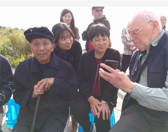 当年曾经参与救过英军战俘的林阿根向前来凭吊的后代介绍当年救援情况。