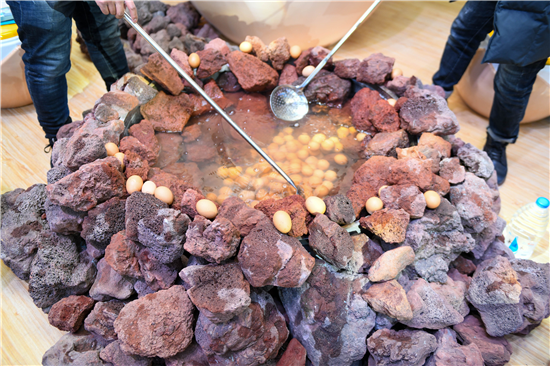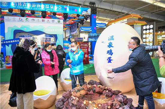 以“十二度粉雪 温暖相约”为主题,长白山占据了今年“雪博会”最大的场地。除了现场的VR滑雪体验,参观者还可以在现场进行“云观光”“云体验”,感受500多公里之外的长白山风光。甚至还可以在现场吃到,长白山当地的火山温泉煮鸡蛋。