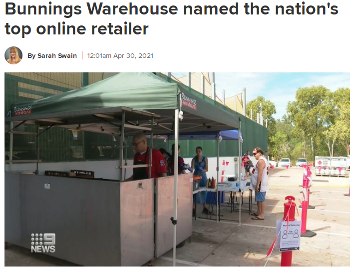 对此,Power Retail表示:“Bunnings Warehouse是疫情期间的网售大赢家。物流和销售方面的跃升让Bunnnings首次超越了两大超市巨头的排名。Bunnings较晚关注网售。到了2020年,Bunnings的网络点击量、收藏量和市场份额才出现大幅增长。”