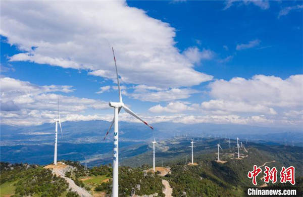 一排排“钢铁巨人”屹立山巅,构成了一道道优美的风景线。 华电新能盐源公司供图