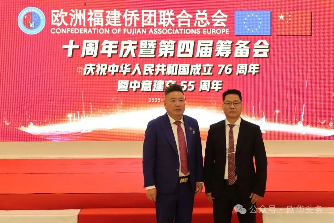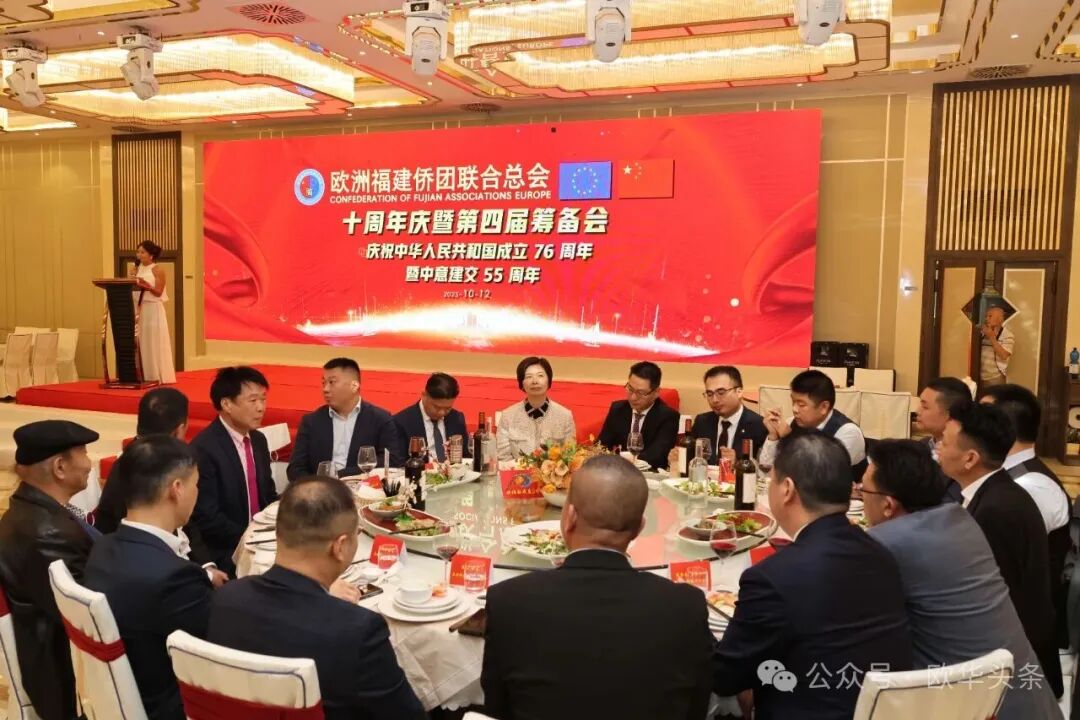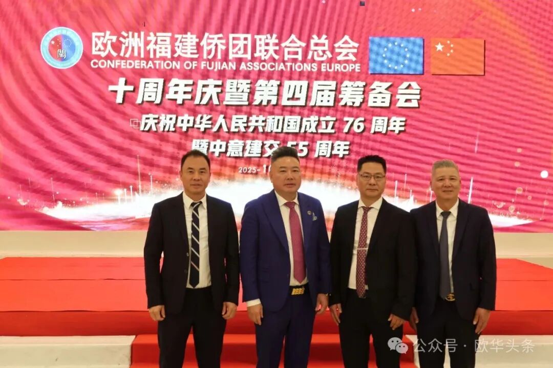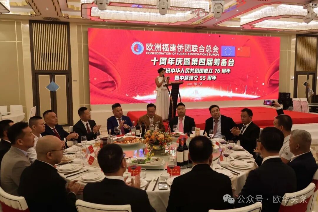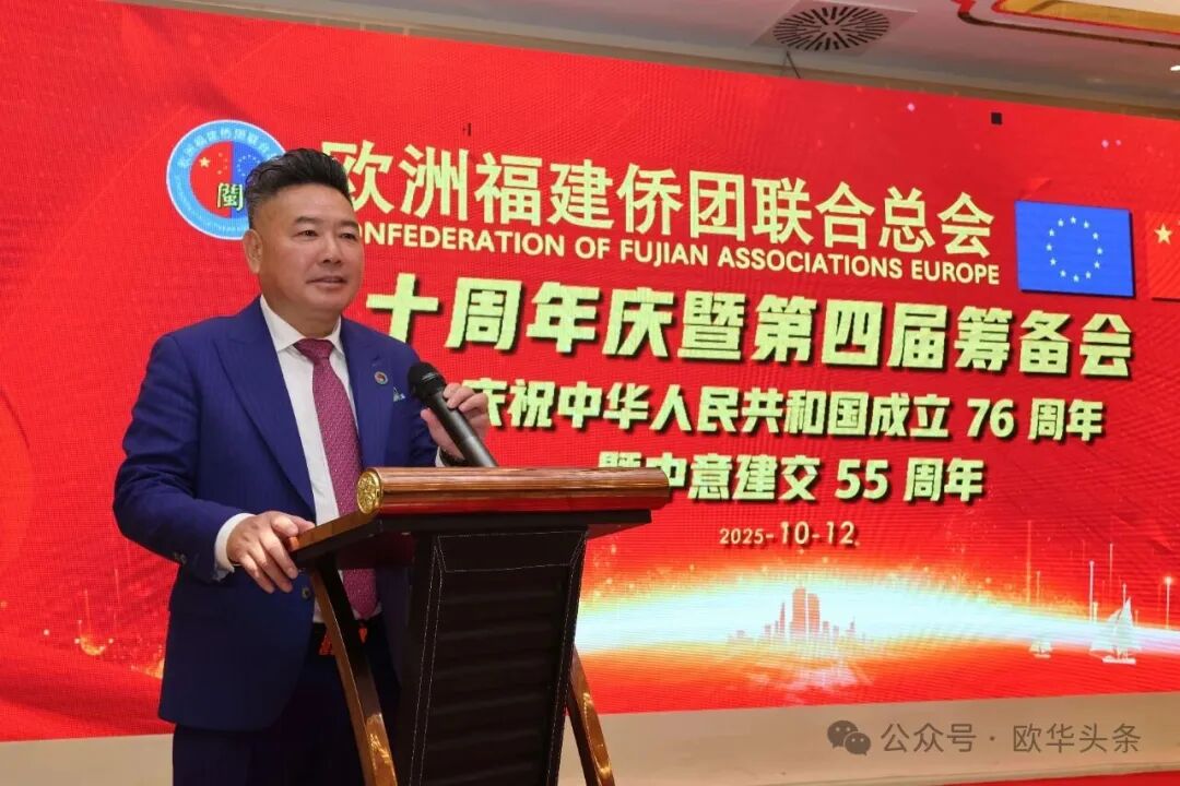 在庆祝中华人民共和国成立76周年,中意建交55周年之际,2025年10月12日晚,华灯璀璨。欧洲福建侨团联合总会十周年庆典暨第四届筹备会在意大利普拉托聚福酒店隆重举行。来自欧洲十多个国家及意大利各地区的上百位侨领和嘉宾欢聚一堂,共同见证这一具有里程碑意义的盛会。 中国驻佛罗伦萨总领馆领侨处主任周莅淼、领事徐静媛莅临晚会现场。欧洲福建侨团联合总会第四届候任轮值主席胡建兵、首届轮值主席陈云斌、旅意福建华侨华人同乡总会会长郑文华,以及来自欧洲多国的侨团代表共同回顾欧福联十年发展历程,展望未来宏伟蓝图。 庆典在庄严的中华人民共和国国歌声中拉开帷幕,全场嘉宾通过《欧福联十周年纪念视频》,回顾十年风雨同舟、携手奋进的光辉历程,致敬闽籍侨胞在欧洲的奋斗足迹与团结精神。 胡建兵主席指出,十年的成长凝聚了每一位侨胞的心血和智慧,大家的支持与付出让欧福联成为海外福建人坚实的精神家园和温暖的港湾。展望未来,欧福联将以新的姿态继续发挥“桥梁纽带”的作用,搭建更开放、更务实的合作平台,凝聚侨心、汇聚侨力,服务社会、回馈桑梓,为侨胞提供更多的学习、交流与发展的机会。他强调,要进一步加强侨团间的沟通与协作,推动资源共享、信息互通,培养优秀华侨青年,让更多年轻力量参与侨务工作,传承侨团精神。欧福联将努力打造一个更加全面、温暖、具有凝聚力的侨胞之家,让每一位侨胞都能感受到家的温暖与力量。 胡建兵主席表示,十周年是新的起点,欧福联将继续坚持开放、务实、创新的理念,携手各侨团,共同谱写“侨连五洲、福泽四海”的新篇章。他最后衷心感谢大家的信任,推选他当选第四届轮值主席,并承诺将不负重托,带领欧福联迈向更加辉煌的未来,为广大侨胞和家乡建设贡献更多力量。 ▲欧洲福建侨团联合总会首届轮值主席陈云斌致辞。 陈云斌主席表示,十年来,欧福联在历届主席团和全体会员的共同努力下,团结旅欧福建侨胞,架设了中欧交流的桥梁,积极维护侨胞权益,热心公益回馈社会,展现了福建侨胞良好形象。展望未来,陈云斌指出,新一届总会将面临新的机遇与挑战,主席团成员应紧密协作,强化服务,推动创新发展,弘扬闽商精神,深化与各侨团及祖国相关部门的联系,关注乡亲需求,特别是在事业发展、子女教育和养老医疗等方面。他强调,要加强与年轻一代侨胞的互动,讲好侨乡故事,传承中华优秀文化和闽商精神,建设可信赖、温暖的侨胞之家。 陈云斌主席希望大家继续关心、支持和参与总会工作,共同把欧福联建设成为促进中欧友好交流的重要力量,并祝会议圆满成功,祝各位乡亲健康幸福。 ▲旅意福建华侨华人同乡总会会长郑文华致辞。 郑文华会长表示,大家齐聚普拉托,共同庆祝欧福联十周年。他代表旅意福建华侨华人同乡总会向欧福联致以热烈祝贺,并向历届领导班子和全体会员多年默默奉献表示崇高敬意。郑文华指出,欧福联自成立以来,始终秉持“团结互助、爱国爱乡”的宗旨,凝聚欧洲各国福建籍侨胞力量,积极推动侨界交流合作,为中欧民间友好和福建侨务事业发展作出了卓越贡献。他介绍,旅意福建华侨华人同乡总会自1999年成立以来,一直是福建省对外宣传侨务政策的重要窗口,会员与家乡保持密切联系,积极参与家乡建设,在服装、餐饮、机械、皮革等多个行业创业发展,并与当地商界开展合作,为侨胞群体创造了良好发展环境。 郑文华会长特别提到,去年11月,总会荣获“侨社之星”殊荣,这是对旅意福建侨胞多年团结奋斗、热心公益、情系桑梓的高度肯定。他衷心感谢中国驻佛罗伦萨总领事馆、兄弟侨团及家乡侨务部门的支持与指导,并表示未来将继续团结奋进、携手同行,增强侨社凝聚力,讲好福建故事,弘扬闽商精神,为中意友好和侨界发展贡献更大力量。最后,他预祝欧洲福建侨团联合总会十周年庆典圆满成功,并祝各位身体健康、事业兴旺、阖家幸福。 ▲驻佛罗伦萨总领馆领侨处主任周莅淼发表讲话。 周莅淼主任向欧福联十周年表示热烈祝贺,并高度评价广大旅欧侨胞为促进中欧民间交流、推动福建与欧洲地方合作所作出的积极贡献。他希望欧福联继续发挥桥梁纽带作用,团结侨界、服务侨胞,为中意关系和福建侨务事业发展贡献新的力量。 ▲旅意福建华侨华人同乡总会文艺部副部长陈丽主持当天的庆典大会。 ▲在庆典仪式上,北京巨微艺术研究院院长、国家一级美术师孙磊先生向欧福联赠送题为“瑞气祥云”的书画作品,寓意欧福联立德立业、传承精神、行稳致远。 庆典活动圆满礼成,在《爱拼才会赢》的熟悉旋律中落下帷幕。与会嘉宾纷纷合影留念,共同记录这一属于全体欧洲闽籍侨胞的荣耀时刻。在热烈欢快的气氛中,全体嘉宾共同举杯庆祝。祝愿欧洲福建侨团联合总会十周年生日快乐,祝愿中意两国友谊长存,福建侨胞事业蒸蒸日上,祖国繁荣昌盛、国泰民安。