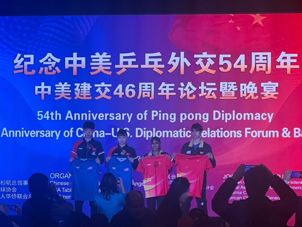 (洛杉矶,2025年12月23日李燕)—枚轻盈的银球,曾转动地球;如今,它在—代又—代青年手中,传递着不变的友谊。当地时间12月22日,在纪念中美“乒乓外交”54周年论坛暨晚宴上,最动人的焦点不是沉重的历史回顾,而是洋溢在球台周围的青春笑脸与真挚对话。这场由中国驻洛杉矶总领事馆、美国乒乓球协会及美国南加州华人华侨联合总会主办的活动明确宣告:中美关系的未来,正由青年携手书写。