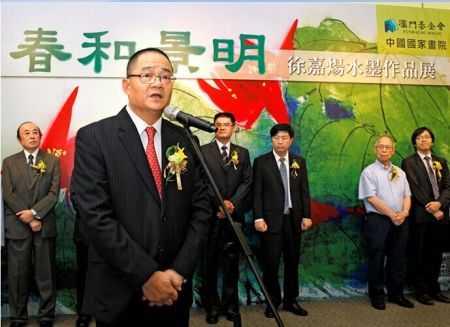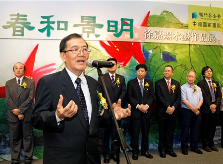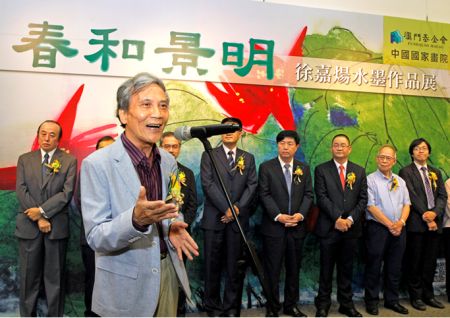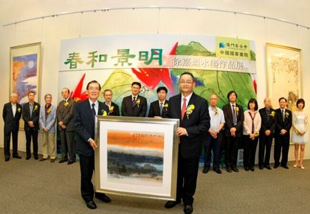 4月28日,由澳门基金会、中国国家画院共同主办的“春和景明——徐嘉炀水墨作品展”在澳门教科文中心隆重开幕 中新社发 王保胜 摄