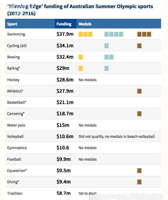 澳洲队每枚奥运奖牌 = 纳税人的1100万