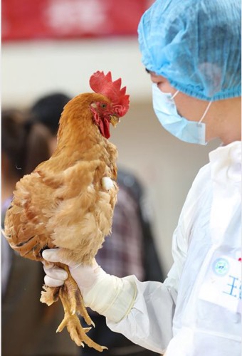 近日,第二届全国动物防疫职业技能竞赛在江苏农牧科技职业学院举行。选手在进行疫苗注射前的“保定”动物。