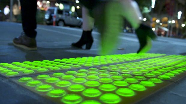 据报道,许多行人在走路时常常低头看手机,因而忘了留意交通信号灯。为了应对低头族,墨尔本政府试行了一项新措施——在人行道路面安装闪灯。