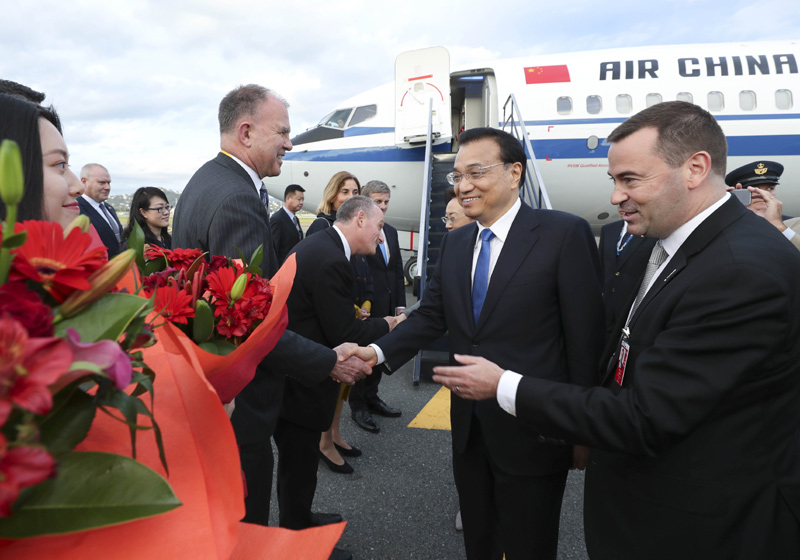 国务院总理李克强26日抵达惠灵顿,开始对新西兰进行正式访问。李克强总理夫人程虹同机抵达。新西兰总理英格利希夫妇到机场迎接。李克强说,中新关系长期走在中国同发达国家关系前列,期待通过此访推动中新关系不断攀上新高峰。这是中国总理时隔11年再访新西兰。