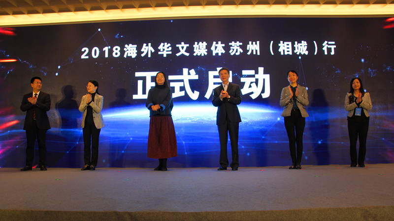 开幕式上,江苏省侨办、苏州市委宣传部、苏州市侨办、相城区委、海外华文传媒协会等各界领导共同为强富美高看江苏华文媒体苏州(相城)行活开幕式上,江苏省侨办、苏