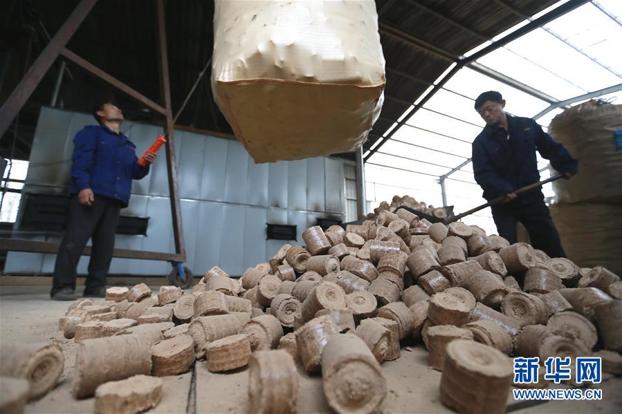 12月3日,山东省青岛市即墨区蓝村镇南泉社区供热站工作人员使用压缩秸秆新能源材料供热。进入供暖季以来,山东青岛市即墨区蓝村镇大力开展“煤替代”工程,推广使用