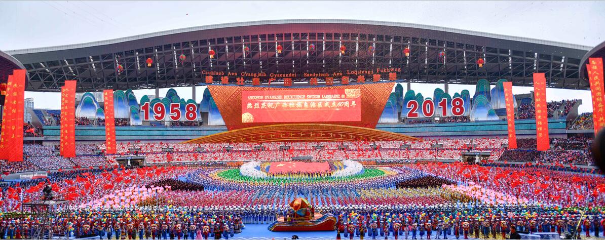 (综合新华社及广西日报报道)壮乡奋进六十载,八桂大地展新貌。12月10日下午,广西壮族自治区成立60周年庆祝大会在广西体育中心隆重举行。中共中央政治局常委、全国