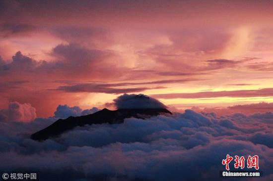 据外媒报道,近日,印尼日惹的默拉皮火山(MountMerapi)喷发火山灰柱,高度达3000米。资料图片:印度尼西亚日惹,默拉皮火山在阳光的映衬下蔚为壮观。图片来源:视觉中国