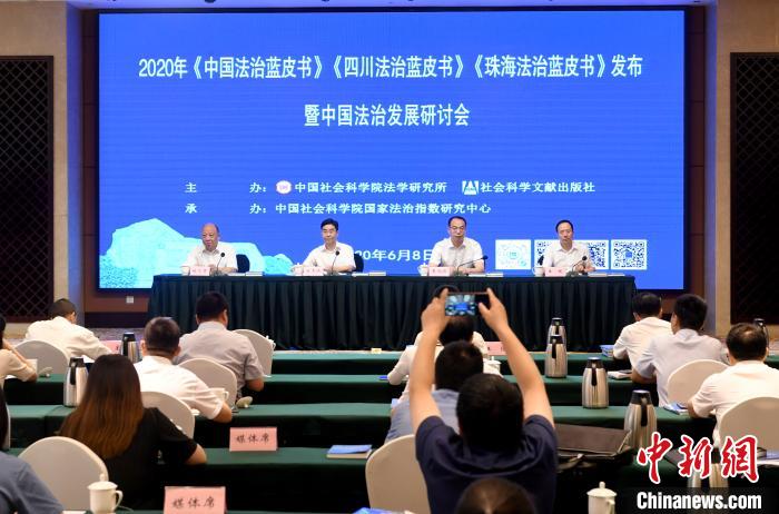 《法治蓝皮书·四川依法治省年度报告No.6(2020)》发布会成都分会场现场。 安源 摄中新网成都6月8日电(记者安源贺劭清)由中国社会科学院法学院研究所、社会科学文
