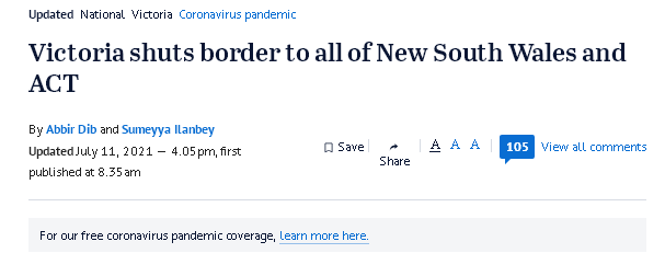 随着悉尼疫情的暴发,维州已从上周日(11日)晚上11点59分关闭对新州和首领地的所有边境。维州州长安德鲁(DanielAndrews)表示将向新州提供应对疫情所需的任何支持或
