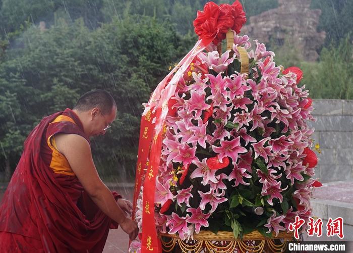 中新社四川阿坝7月24日电(记者郑巧)近日,全国政协常委、中国佛教协会副会长、中国佛协西藏分会会长班禅额尔德尼·确吉杰布来到四川省阿坝州松潘县川主寺镇元宝山下