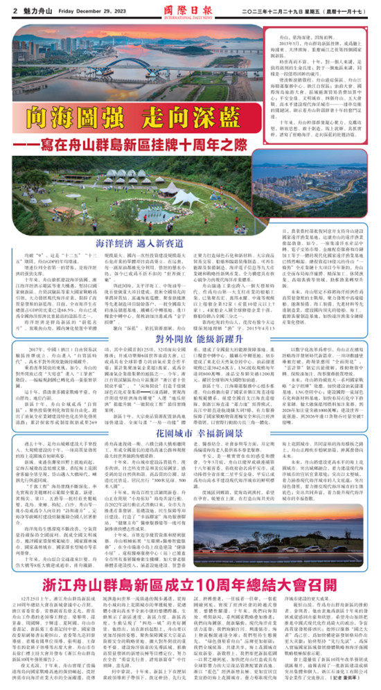 舟山,依海而建,因海而兴。2013年3月,舟山群岛新区挂牌,成为继上海浦东、天津滨海、重庆两江之后第四个国家级新区。时荏苒而不留。十年,对一个人来讲,是值得铭刻的
