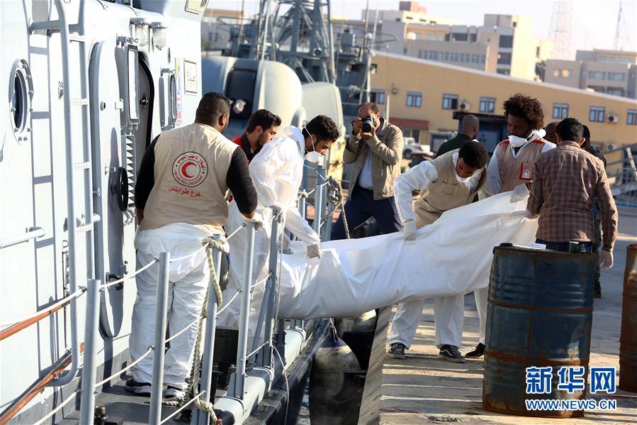 11月25日,在利比亚的黎波里一海军基地,人们将偷渡者遗体搬下船。利比亚海军下属的海岸警卫队25日宣布,在利比亚西部海域打捞起31具偷渡者遗体,并救起约200名偷渡者
