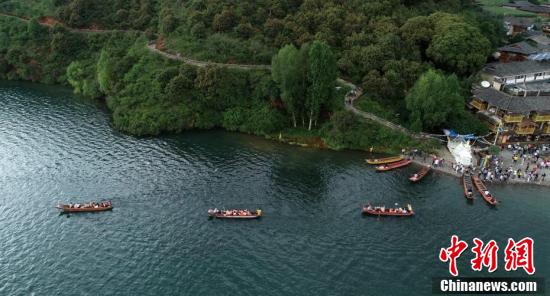8月中旬,位于四川与云南交界处的泸沽湖景区迎来旅游旺季,湖边成群的游客排队等候乘坐猪槽船。泸沽湖是淡水湖,湖水清澈见底。湖面偶尔有成群的野鸭欢快游过,水面荡