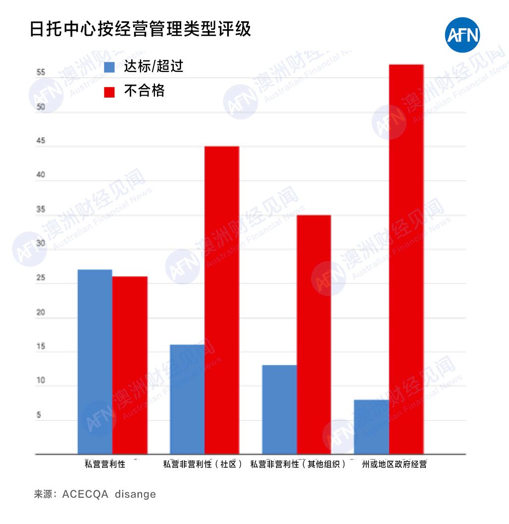 其次是托儿中心的质量。如今,在澳大利亚质量管理局注册的7409家日托中心中,几乎有三分之二是盈利性的。但收着越来越贵的费用,他们的服务质量却越来越差。数据显示,在所有类型的日托中心中,营利性中心不符合国家质量标准所占的比例最大,符合国家质量标准的比例最小。