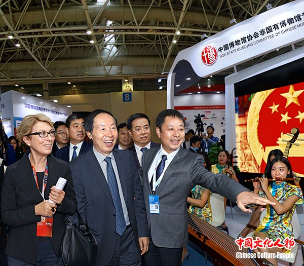 国家文物局局长刘玉珠,国家文物局副局长关强,福建省委常委周联清,国际博物馆协会主席苏埃•阿克索伊等领导及嘉宾在中国博物馆协会非国有博物馆专业委员会秘书长王勇,西安大唐西市博物馆馆长王彬的陪同下参观非国有博物馆展区