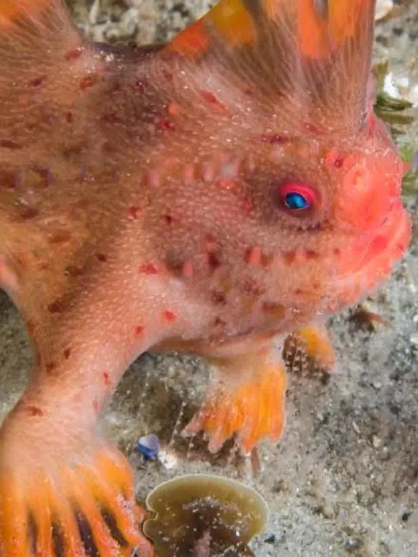 粉红手鱼是在澳洲大陆南部的塔斯马尼亚岛附近可以看到的14种手鱼之中较罕见的一类。