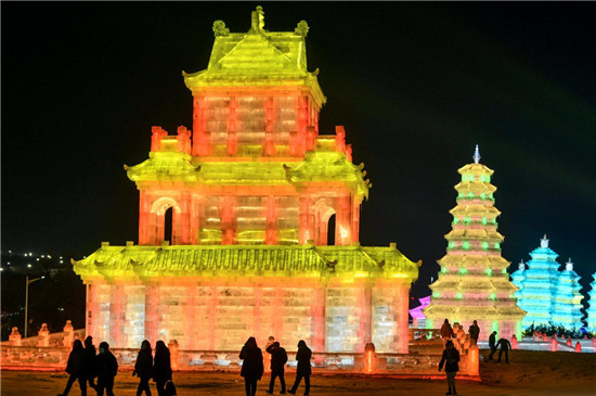 长春冰雪新天地冰雕雪雕建筑。梁琪佳摄