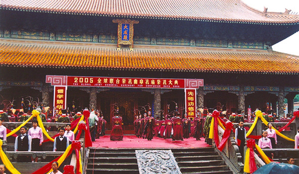 “文明古国五千岁传承尚礼,好客山东十六年往返争游”。