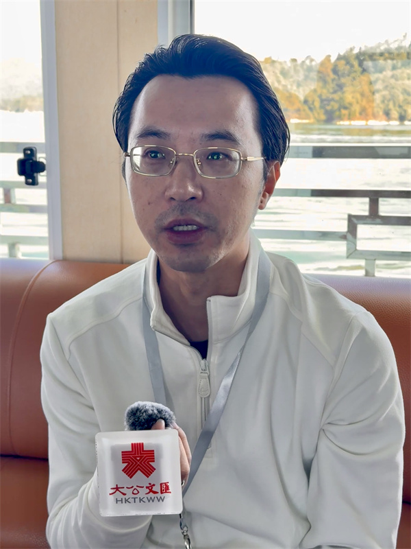 欧中之声副总编林奕贤表示,从万绿湖的保护和开发可以看出河源在经济与生态发展中取得了良好的平衡。 (李紫妍摄)