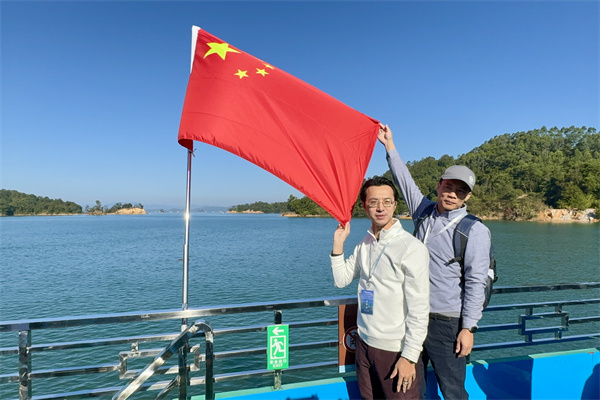 海外华媒代表了解万绿湖在生态保护建设,及生态旅游开发、水经济开发等方面的高质量发展情况。 (李紫妍摄)