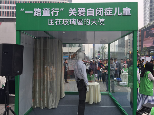 中新四川网4月1日电 (邹立杨 汤雁)“其实自闭症儿童,就像被关在一个密封的盒子里,被喻为‘关在瓶子里的天使’。”成都西南儿童医院教授付师亭告诉记者。1日,自闭症志愿者在成都春熙路地铁2号线出口处,通过挑战“独处玻璃房子12小时”的行为,希望让更多人感知自闭症儿童的内心世界并关爱他们。