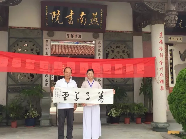 海峡两岸嘉宾:陈永栈、陈天成、石兆珉 、吕坤和、孟小红、李仕德等为燕南书院内的《孟子学堂》进行揭牌仪式