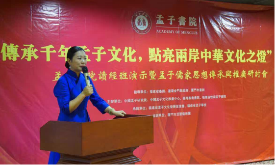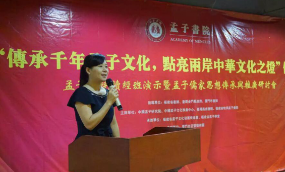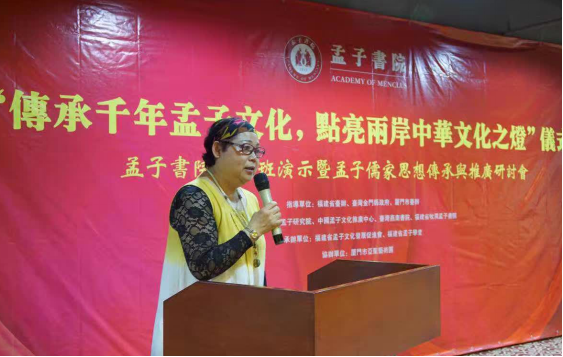 (圖)孟小紅,孟子後裔第75代、中國孟子文化推廣中心理事長、福建省孟子文化發展促進會會長、孟子書院院長