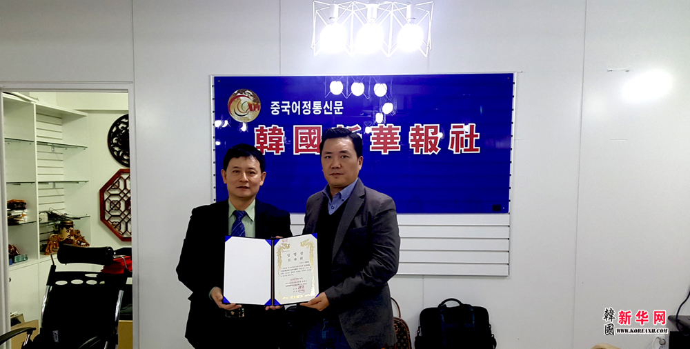 据韩国新华报讯 (记者 李希江 李恩知 摄影报道) 日前,韩国SNS记者联合会金容斗会长(内外经济TV媒体经营战略团会长)和KCBA韩中美容协会李汉洙会长,在韩国首尔高丽银团大厦1楼签署韩·中·日媒体签约仪式。
