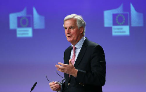 资料图片:欧盟英国“脱欧”首席谈判代表巴尼耶在布鲁塞尔欧盟总部举行记者会。(新华社)