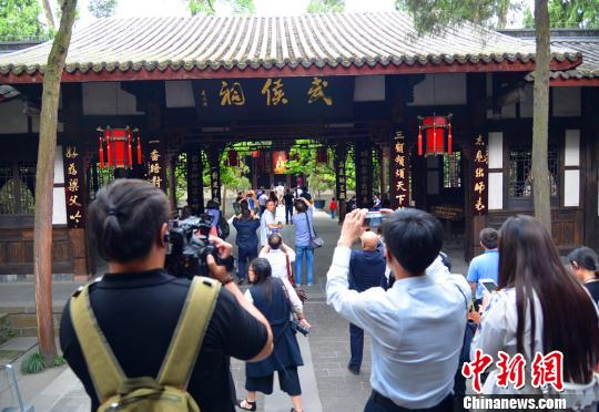 原标题:22家海外华文媒体成都武侯祠品三国文化感受古蜀之美海外华文媒体采访团参观成都武侯祠。苗志勇摄海外华文媒体采访团在武侯祠合影留念。苗志勇