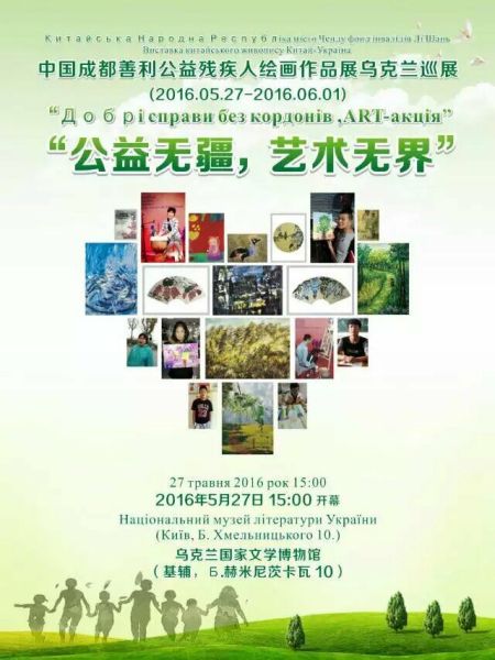 “公益无疆,艺术无界”中国成都善利公益残疾人绘画作品展乌克兰巡展于2016年5月7日在乌克兰首都基辅市乌克兰国家文学博物馆隆重举行。乌克兰基辅国家残疾人协会会