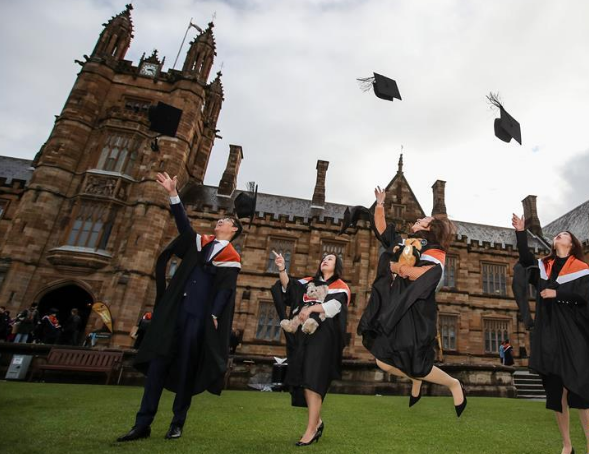 澳洲八校联盟的悉尼大学的学生们在校园内拍摄毕业照