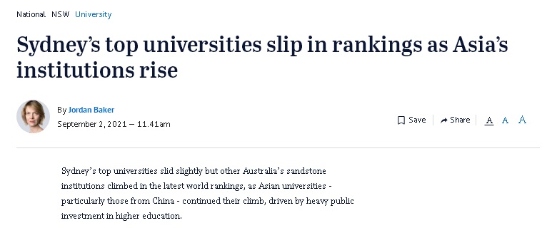 英国《泰晤士报高等教育专刊》(THE)2日发布了2022高等教育世界大学排名。数据显示,尽管墨尔本大学仍是澳洲大学第一名,但悉尼的顶尖大学排名下滑。与此同时,亚洲大