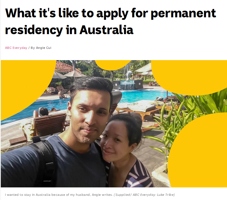 澳华裔女作家崔敏尔(Angie Cui)17日在澳广网(ABC)发表文章,讲述自己在澳洲申请永居以及跨国联姻的经历。