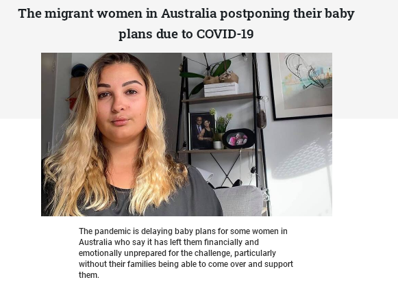 在新冠肺炎疫情期间,联邦政府规定移民的父母不能从海外入境澳洲,此举引发争议。由于身处海外的家人无法前来提供支持,一些移民女性近日推迟生育计划。