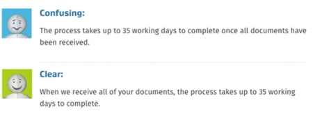 使用简单单词,因为当使用长单词时,一些读者会直接略过,跳到短单词上去,这样一来据容易漏掉重要信息。举个例子: