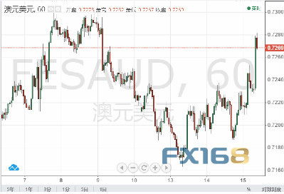 澳洲就业数据公布后,澳元/美元自0.7234反弹至0.7282高点。