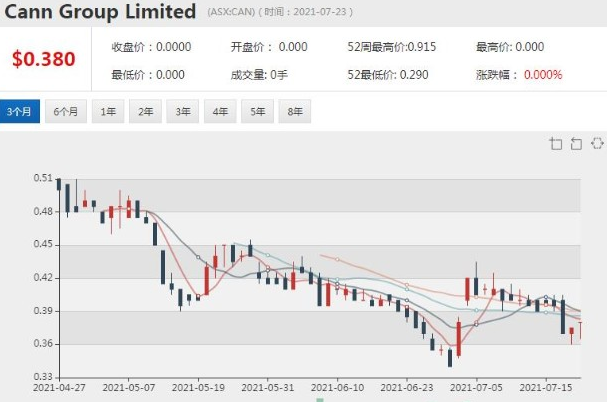 公告发布后,Cann Group股价周一早盘暴跌。10:46成交价为0.335澳元,下跌0.045澳元,跌幅11.84%。该股近一年的投资回报率为亏损28.72%。