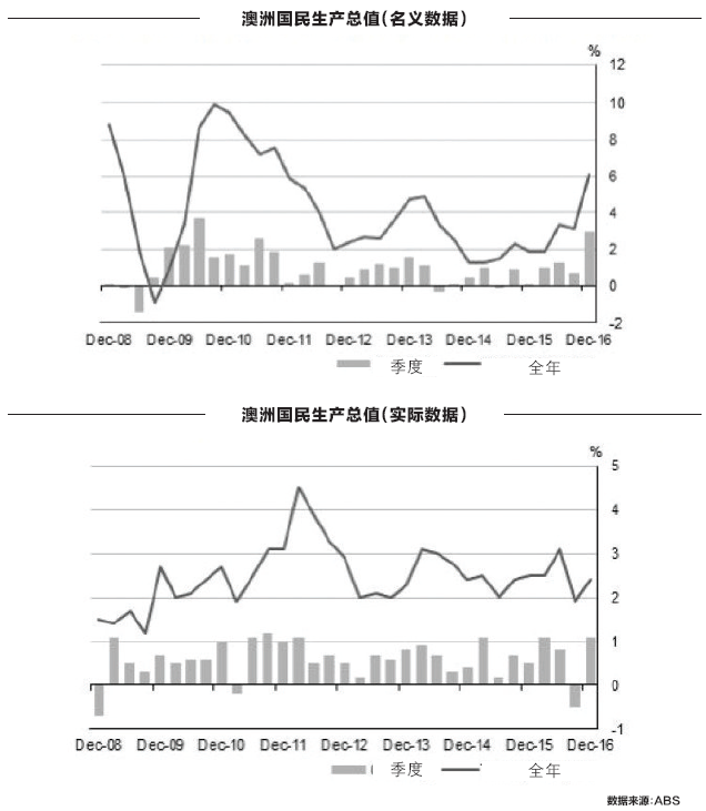 上周三(3月1日),2016年澳洲经济数据终于在万众期待之中姗姗来迟,受惠于出口增加和家庭开支的意外增长,第四季度经济增长反弹至1.1%,全年增长率达2.4%。这一增长幅度可谓出人意料,也在事实情理之中,此前经济师们普遍认为第四季度增长仅为0.8%,全年增长2%。