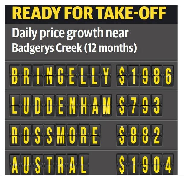 悉尼将在巴杰斯溪(BadgerysCreek)建设第二机场,这使得新机场所在地周边城区的房价出现飙升,部分城区日涨近2000澳元。据了解,悉尼巴杰斯溪机场有望在2026年投入运