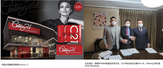 美国大型奢侈品奥莱Century 21的亚洲分销商C21K株式会社代表Gim Uk与Polaris公司代表Chae Woohyuk,韩国NFSWA财团会长李汉洙于2021年4月19日签署共同发展商业合作战略协议,强强联手,建立全球奢侈品分销渠道。