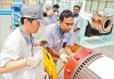 2016年8月中国中车南亚地区首个铁路工厂在印度投产。图为印度哈里亚纳邦巴沃工业园区中车铁路工厂生产线上的中印工人。近日,腾讯领投了印度移动医疗企业Practo的