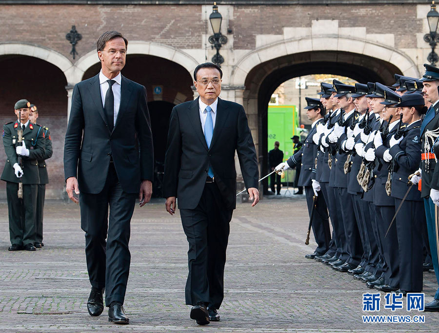 当地时间10月15日上午,国务院总理李克强在海牙首相府同荷兰首相吕特举行会谈。这是会谈前,吕特在海牙议会大厦广场为李克强举行隆重欢迎仪式。 新华社记者 李涛 摄