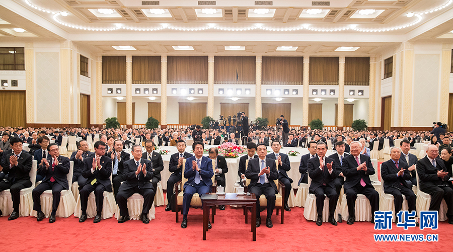 新华社北京10月25日电 国务院总理李克强10月25日下午在人民大会堂与对华进行正式访问的日本首相安倍晋三共同出席纪念中日和平友好条约缔结40周年招待会并致辞。